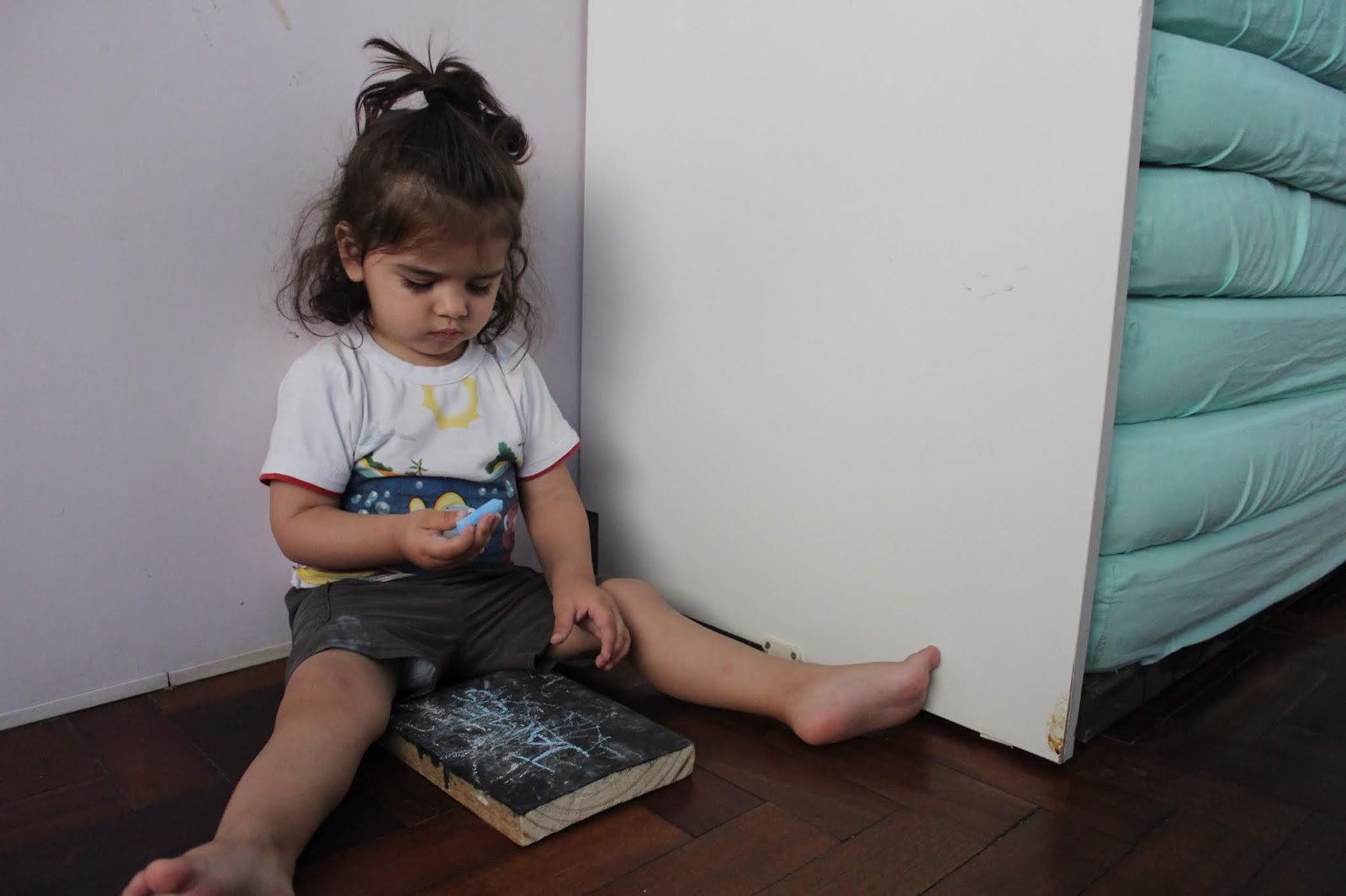 Pensando nisso, nossa turma explorou as madeiras com giz, criando